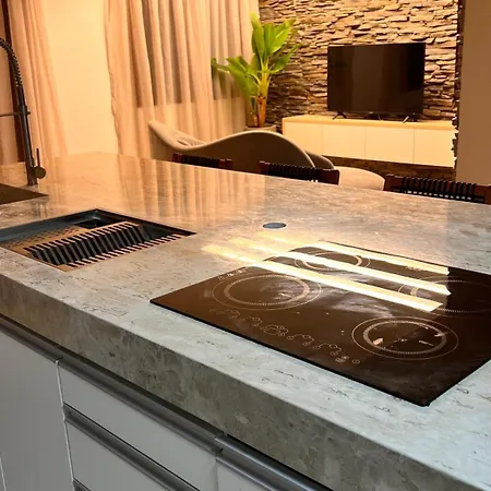 Diese Unterkunft verfügt über einen Balkon und eine Terrasse und ist mit einer Klimaanlage sowie einem Flachbildfernseher mit Satellitenkanälen ausgestattet. Dieses am Strand Apartment ist auch mit einem Sofa und einem Schreibtisch ausgestattet. Hier finden Sie Annehmlichkeiten wie eine Badewanne und eine Dusche. Außerdem gibt es Badelaken.